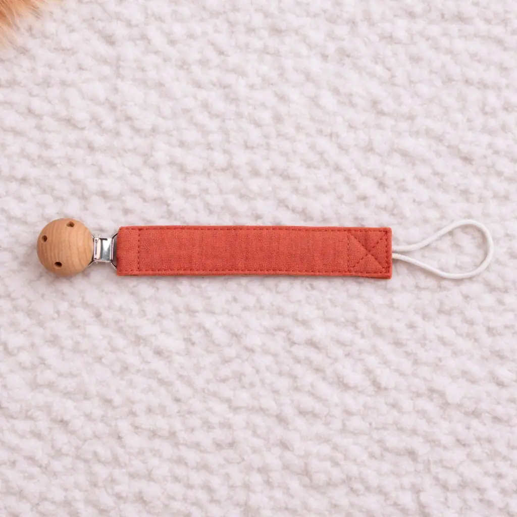 Simple, douce et facile à vivre, cette attache tétine en gaze de coton (aussi appelée mousseline) accompagne le quotidien de bébé : à la maison, en balade, au parc ou lors des siestes. Son rôle est clair : garder la tétine à portée de main et limiter les petites chasses au trésor dans le sac, le lit ou la poussette.