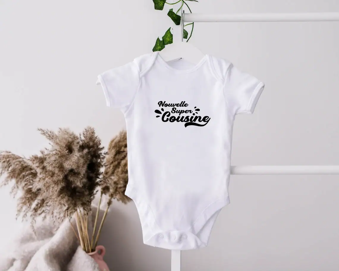 Votre petit trésor vient d’agrandir la famille ? Annoncez cette merveilleuse nouvelle avec style grâce au Body Nouvelle Super Cousine, conçu pour célébrer l’arrivée d’un nouveau membre dans le clan.