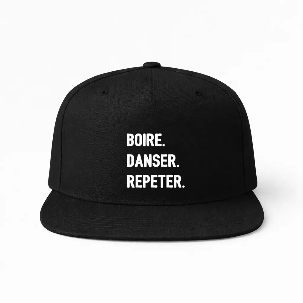 Cette casquette festival transforme votre état d’esprit en accessoire de mode assumé. L’inscription « Boire Danser Répéter » résonne avec l’énergie pure des weekends qui marquent, des soirées qui s’étirent et des moments où tout devient possible. Conçue pour accompagner vos escapades musicales, elle s’adapte parfaitement grâce à sa taille réglable et résiste aux longues journées sous le soleil. Le choix entre plusieurs styles vous permet de trouver exactement l’attitude qui vous correspond : classique baseball, moderne snapback ou décontractée filet. Chaque couleur raconte sa propre histoire, du noir rock au bordeaux sophistiqué.