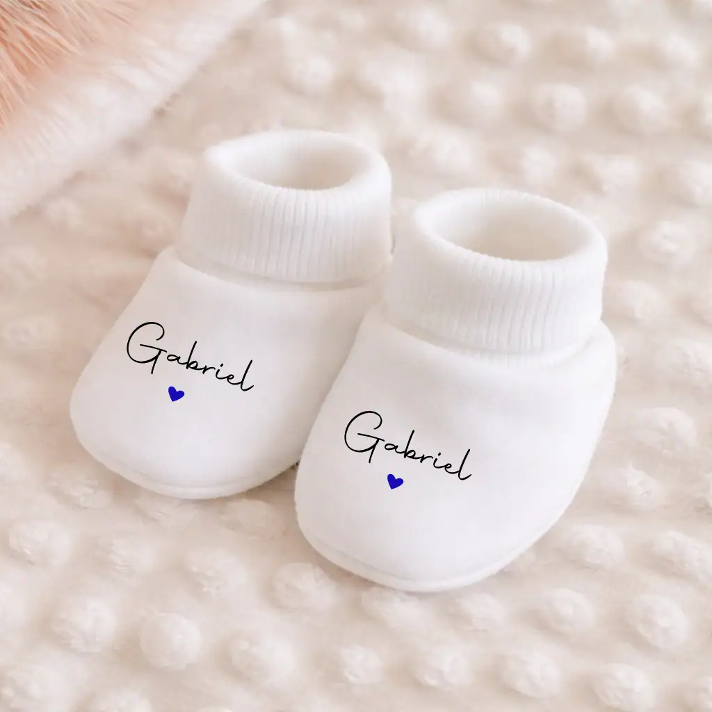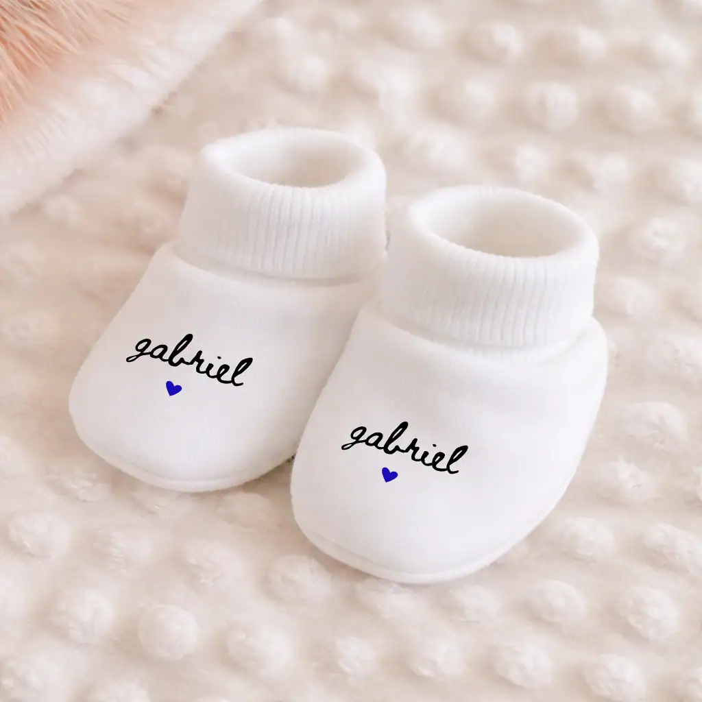 Doux comme une caresse, ces chaussons bébé allient confort et tendresse pour accompagner les tout premiers pas de votre petit trésor. Le motif cœur bleu apporte cette pointe d’élégance qui fait toute la différence, tandis que la personnalisation avec le prénom crée un lien unique. Parfaits pour garder les petits petons au chaud ! Leur design mixte s’harmonise naturellement avec toutes les tenues de naissance. Chaque chausson raconte déjà une histoire avant même d’être porté. La coupe souple respecte la morphologie délicate des bébés de 0 à 6 mois, offrant liberté de mouvement et protection en douceur.