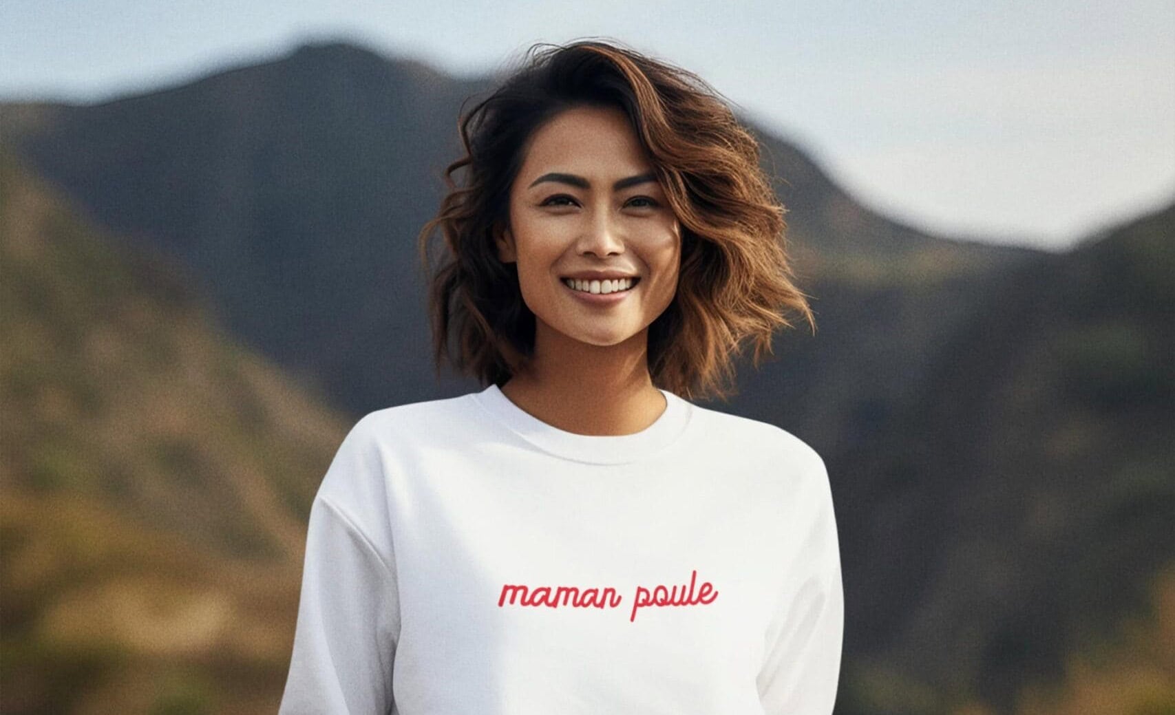 – Sweat Maman Poule : rien de tel qu’un sweat doux et chaleureux pour accompagner vos moments en famille. Idéal pour les mamans qui aiment se détendre tout en restant stylées.