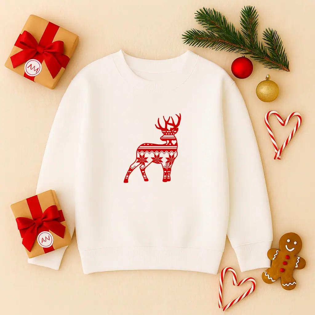 Si le pull de noël fait sourire ou frémir, le motif cerf reste sans conteste le préféré des petits comme des grands. Son côté chaleureux évoque immédiatement l’hiver, les feux de cheminée et les longues soirées en famille.
