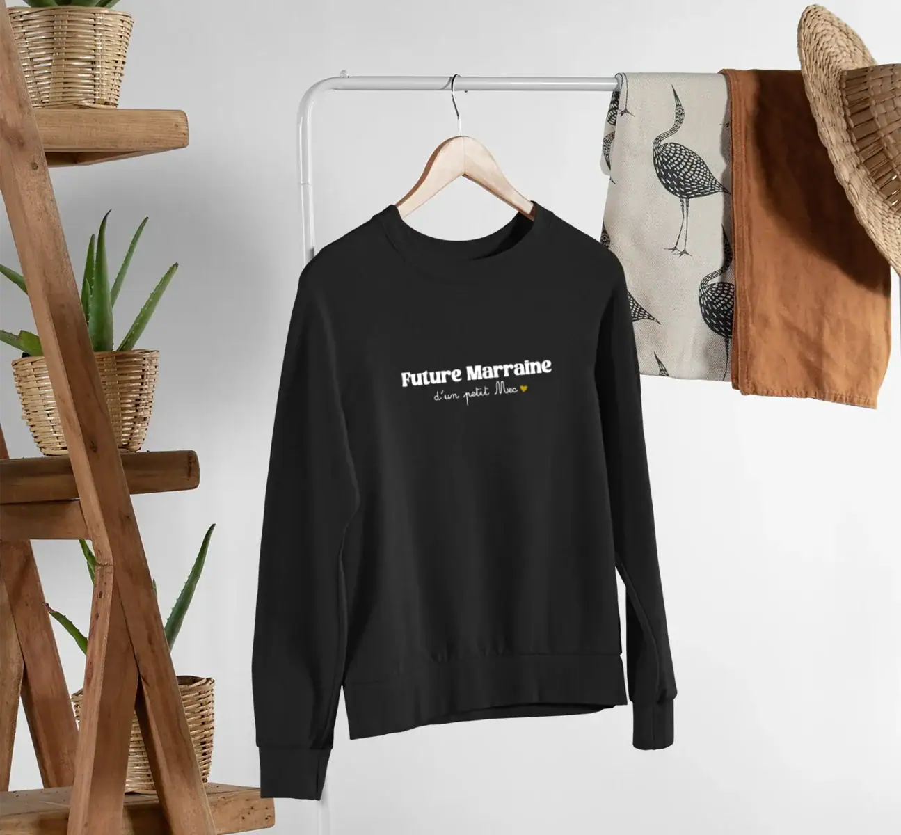 Plus qu’un simple vêtement, c’est votre façon d’annoncer cette belle nouvelle ou de revendiquer ce lien si spécial avec votre filleul. Sa coupe classique unisexe s’adapte à toutes les silhouettes, tandis que son message attendrissant fait mouche à chaque sortie. Disponible en blanc intemporel ou noir sophistiqué, il se glisse facilement dans toutes vos tenues du quotidien. L’occasion parfaite de porter votre fierté de marraine tout en restant naturellement élégante. Ce pull devient vite le complice de vos moments privilégiés : retrouvailles familiales, sorties avec le petit mec en question, ou simplement pour afficher votre bonheur au quotidien.