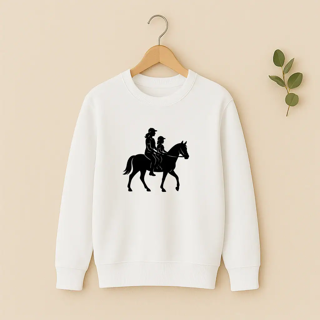 L’amour du cheval se transmet de génération en génération. Vivez cette passion équestre ensemble avec ce pull assorti qui célèbre votre complicité unique.