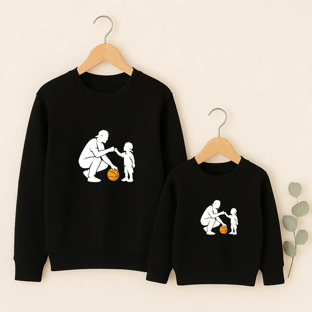 Imaginez-vous tous les deux, fièrement assortis, affichant votre duo gagnant où que vous alliez. Ce pull père-fils capture l’esprit du terrain dans un design qui parle aux vrais fans de basket. La coupe classique convient parfaitement aux deux générations, tandis que le style unisexe s’adapte à toutes les morphologies. Chaque détail évoque cette complicité particulière entre un papa et son enfant unis par le sport. Un vêtement qui raconte votre histoire commune et crée des souvenirs durables.