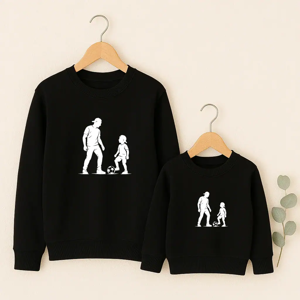 Ce duo de pulls transforme chaque sortie en moment privilégié entre générations. Le design footballeur apporte cette touche sportive que les passionnés adorent, tandis que la coupe classique convient parfaitement aux papas comme aux petits champions en herbe. Disponible en blanc ou noir, il s’adapte à tous les styles et se coordonne facilement avec le reste de la garde-robe. La qualité de confection garantit un confort optimal durant les longues journées, que ce soit pour encourager l’équipe favorite depuis les gradins ou simplement partager un moment détente à la maison. Ces pulls père-fils footballeur renforcent les liens familiaux tout en affichant votre passion commune pour le ballon rond.