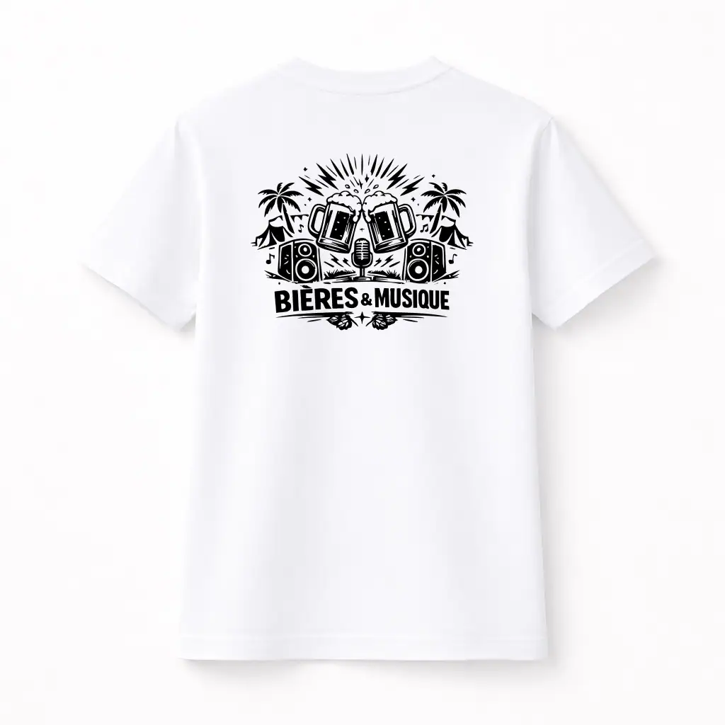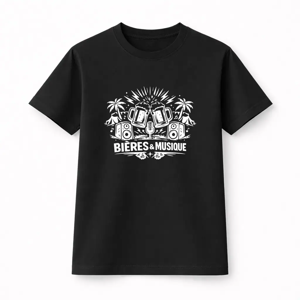 L’esprit festival à porter sur soi. Ce t-shirt capture parfaitement l’atmosphère électrisante des festivals d’été où bière fraîche et musique live se mélangent sous le soleil.