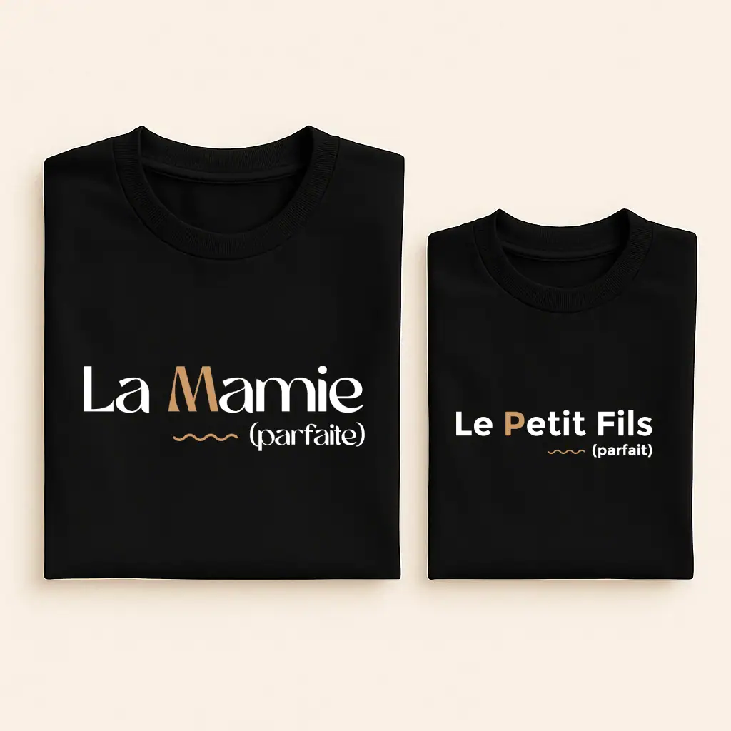 Porter le même message « Parfait » crée instantanément une connexion visuelle touchante qui attendrit toute la famille. Ces tee-shirts assortis transforment les moments du quotidien en souvenirs précieux, qu’il s’agisse d’une balade au parc, d’un goûter complice ou d’une séance photo spontanée. La coupe classique unisexe s’adapte naturellement à tous les styles, tandis que le choix entre noir et blanc permet de s’harmoniser facilement avec n’importe quelle tenue. Plus qu’un simple vêtement, c’est un symbole de cette relation privilégiée qui unit les générations.